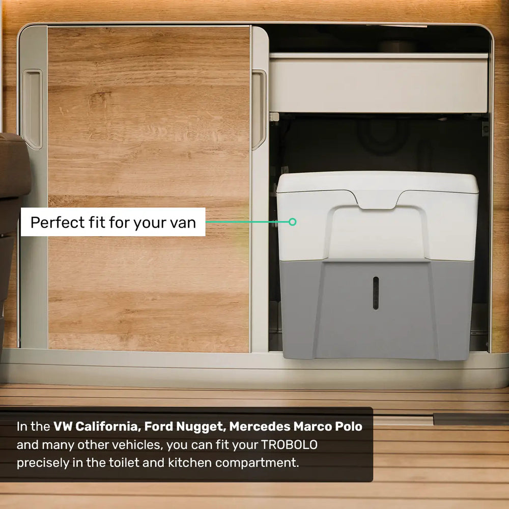 DER Organizer für alle Campervans mit integriertem seitlichen Küchenblock (z.B. California Ocean/Coast, Marco Polo, Vanster u.v.m.)! Endlich ist deine Suche nach einer kleinen, aber sinnvollen Mülllösung vorbei, denn bei diesem Organizer bekommst du einen 3-Liter-Mülleimer und einen praktischen Spülorganizer mitgeliefert. In der Mitte kannst du eine Küchenrolle oder ein Handtuch aufhängen und hast so immer alles griffbereit!