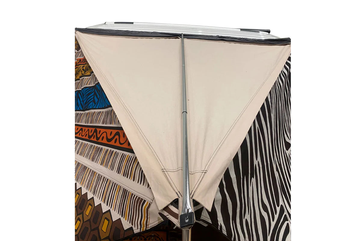 Der BENT Alu First-Spannstab ist speziell entwickelt, um bei wenig Platz oder hartem Untergrund( wie Asphalt ) auf die vordere Abspannleine , die vom Fahrzeug weg gespannt wird zu verzichten. Dazu fixiert man die Seite mit der Rohrschelle vom Alu Firststab an dem Spannstab des Universaladapters.