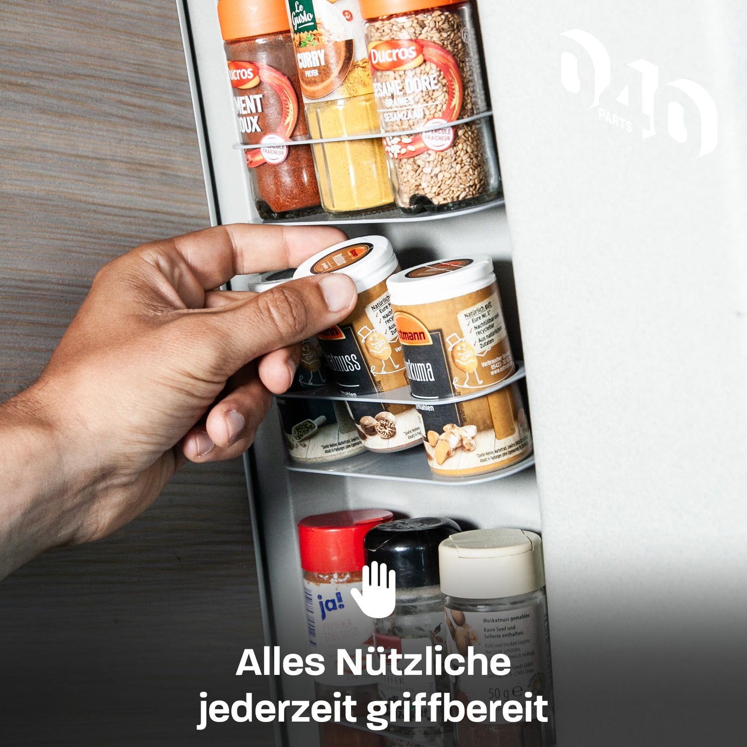 EINFACHE MONTAGE: Kann direkt in die kleine Verdunkelung neben dem Schrank im California geklebt werden: Gewürze immer griffbereit beim Kochen.