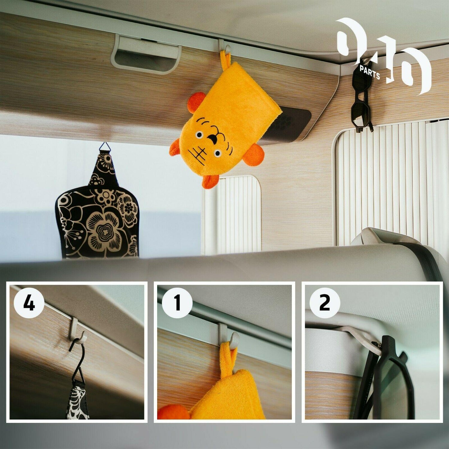 KEINE UNORDNUNG MEHR: Das Hakenset besteht aus 10 Haken mit unterschiedlichen Funktionen, die dir dabei helfen Ordnung in deinen Camper zu bringen.